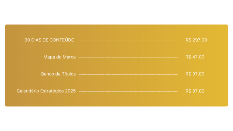 A Masterclass Código do Branding te dá clareza sobre o posicionamento da sua marca. O Planner Marca Magnética te entrega o conteúdo pronto para aplicar isso no dia a dia.